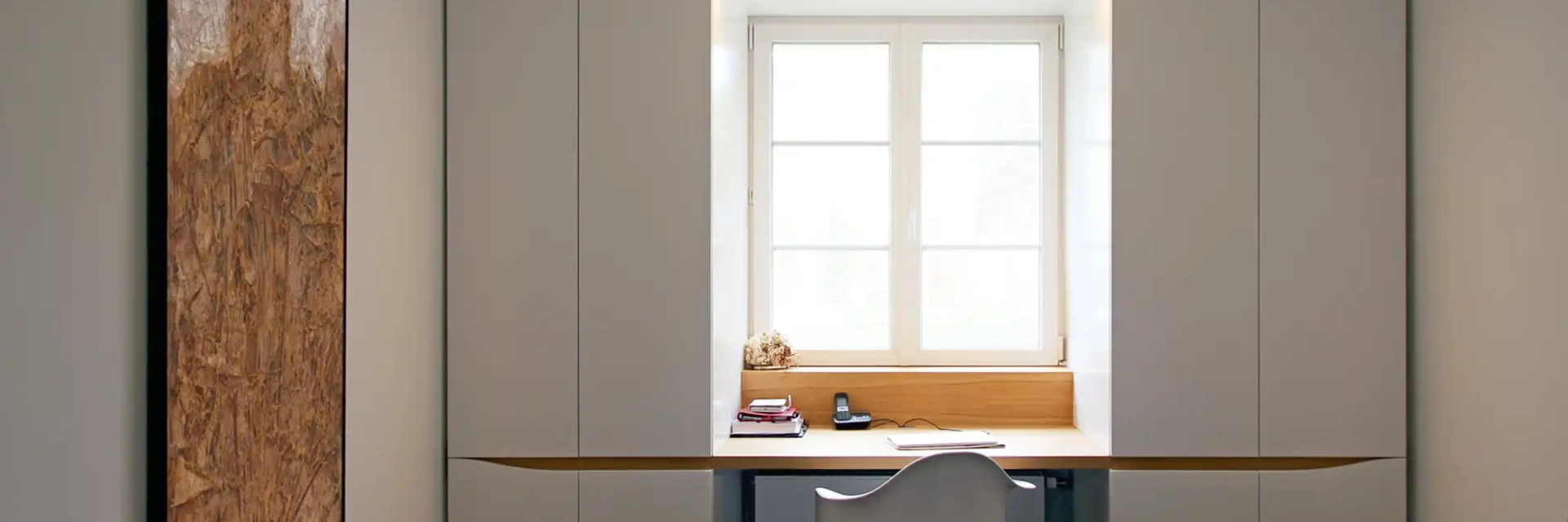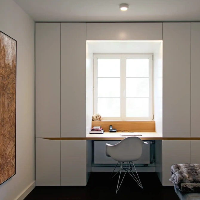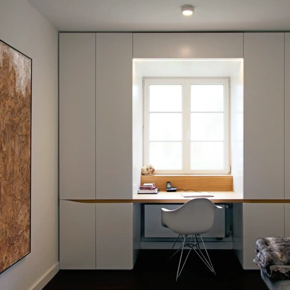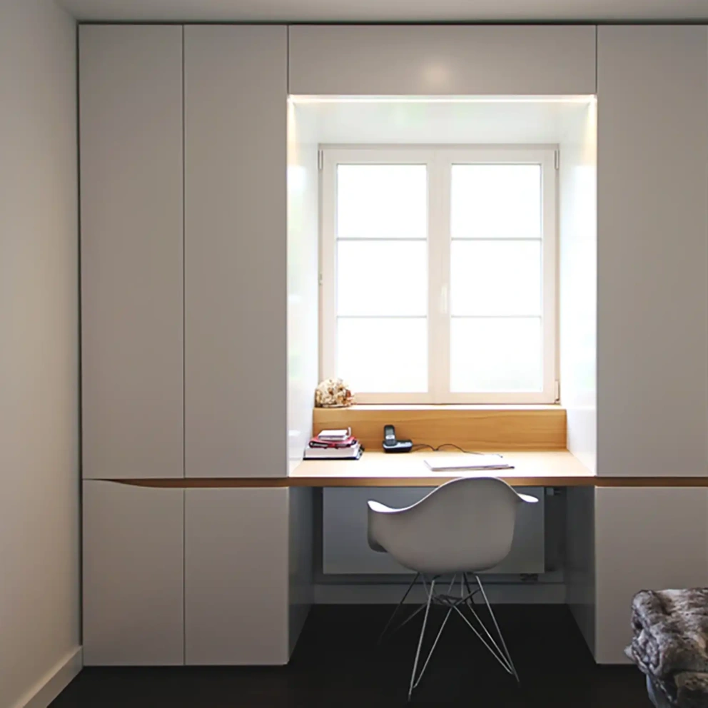 - Homeoffice im Kleinen: Ein Schreibtisch in einer Nische bietet einen funktionalen Arbeitsplatz, der bei Bedarf verschwindet