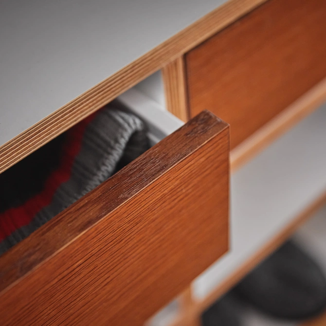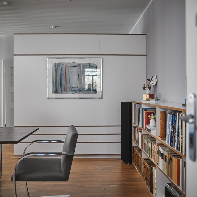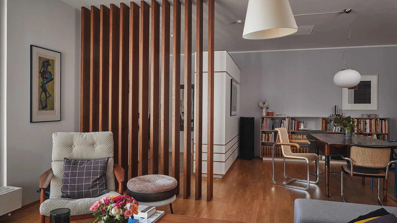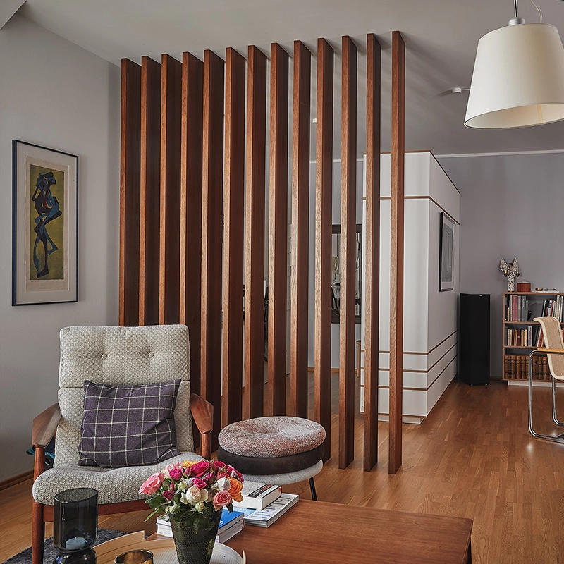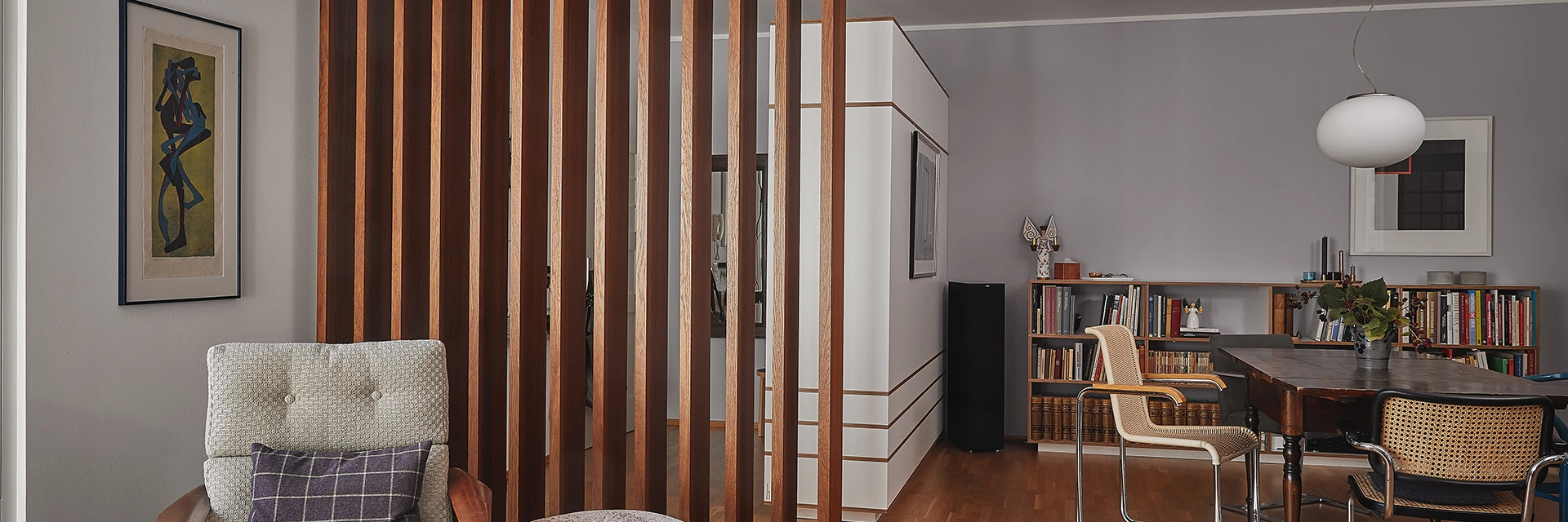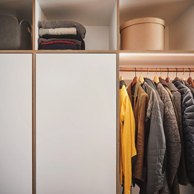 - ein freistehehender Garderobenschrank und Rauteiler grenzen den Eingangsbereich vom Wohnraum ab