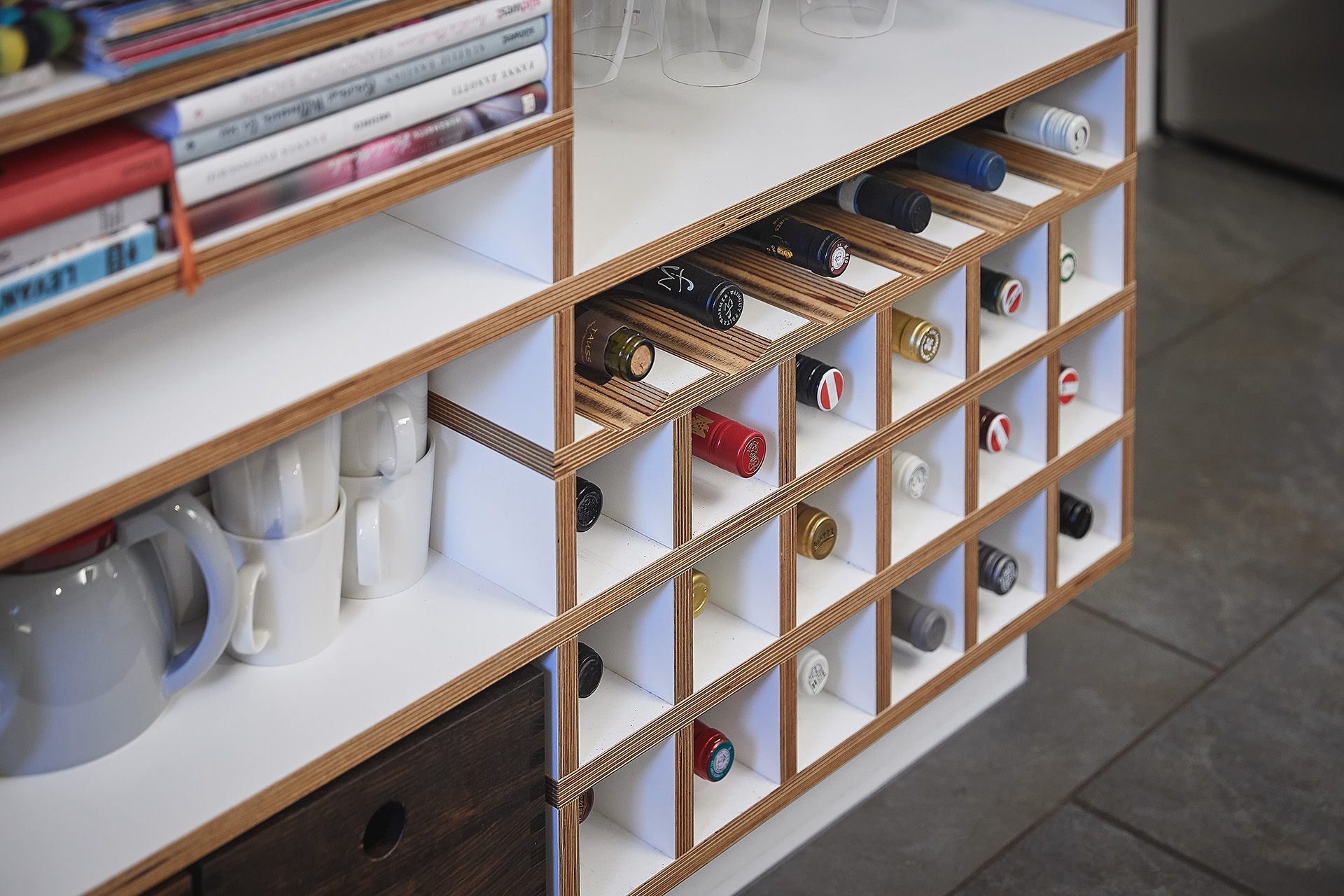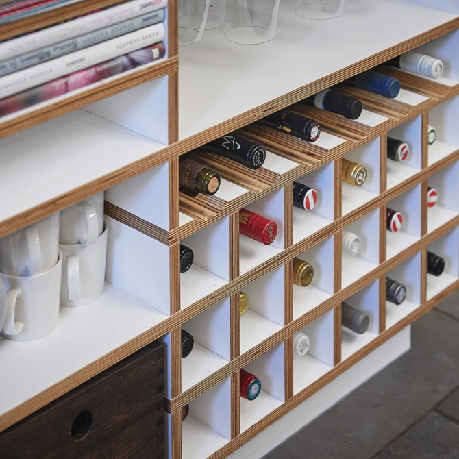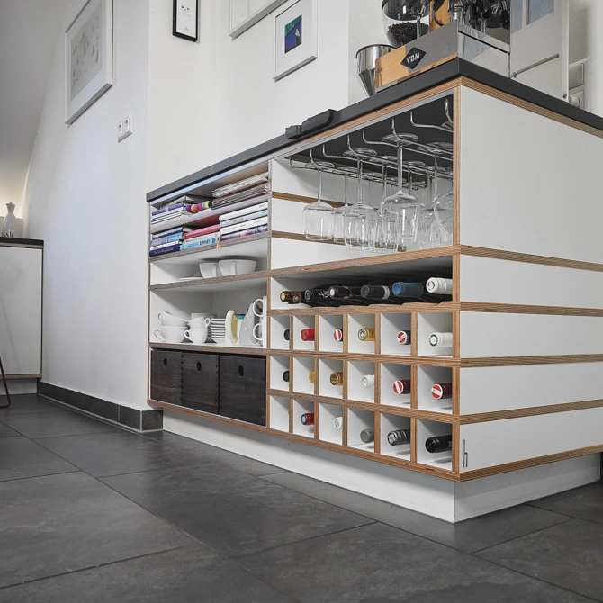 - in der Küche findet in einer bisher ungenutzten Ecke eine Kaffee- und Weinbar ihren Platz