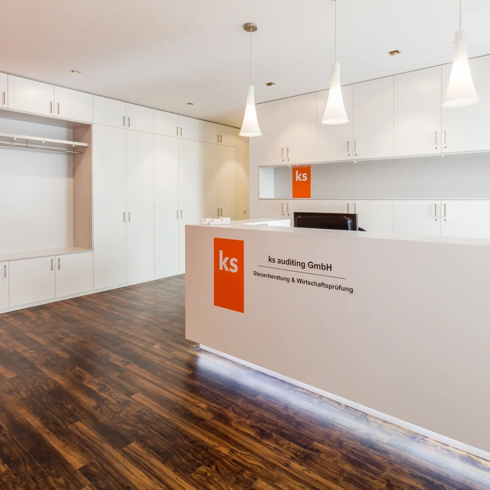 - Büroräume: raumhohe Einbauschränke, Wandanschluss durch flächenbündige Blenden