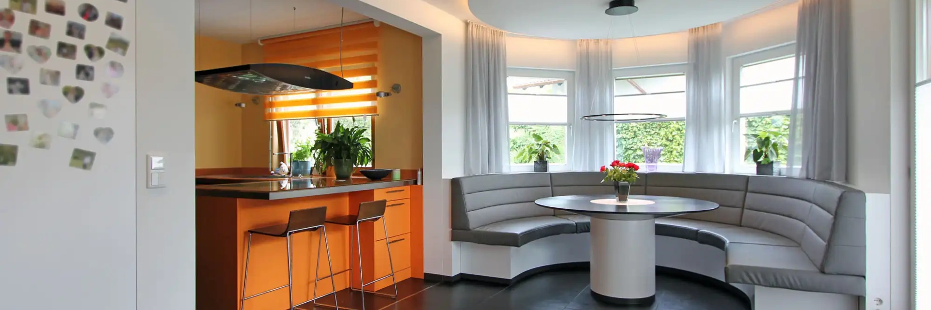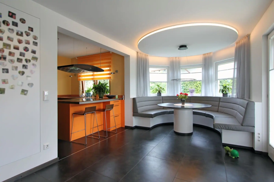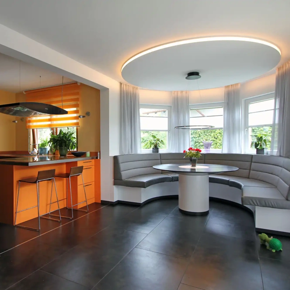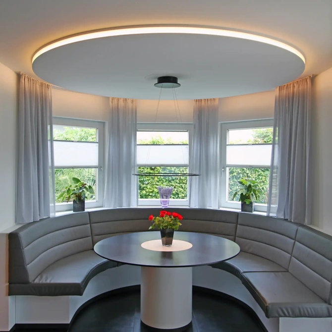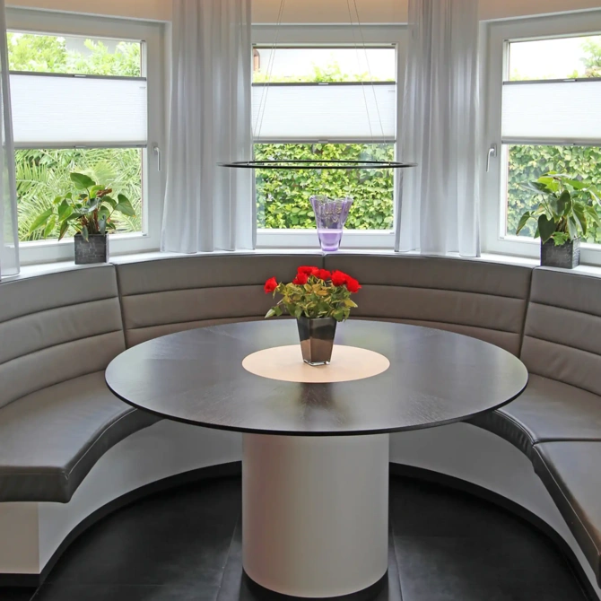 - Runde Polsterbank mit formschöner Integration und technischer Raffinesse