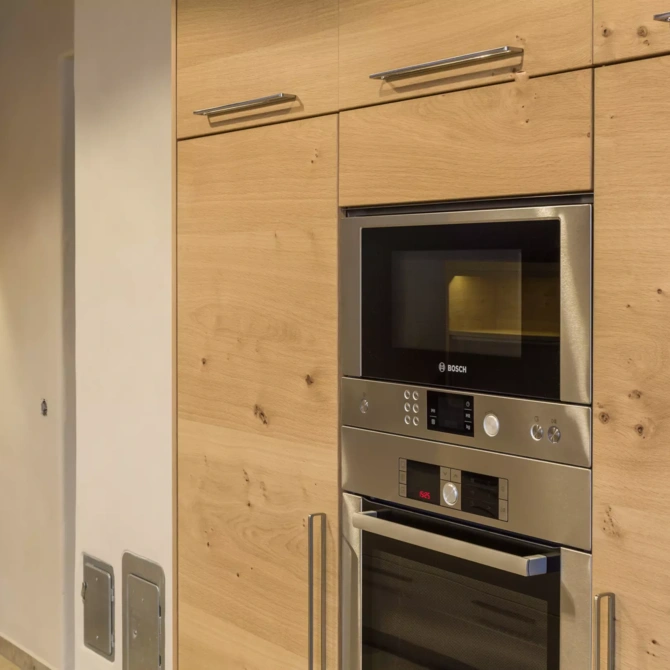 - Hochschrank mit Einbaubackofen, Mikrowelle und Kühlschrank