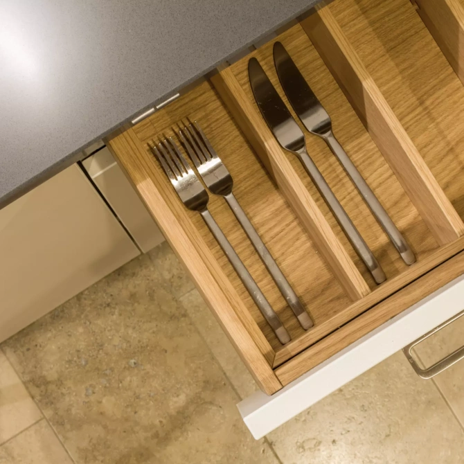 - Schubkästen aus Eiche Massivholz, mit Dämpfung und Selbsteinzug