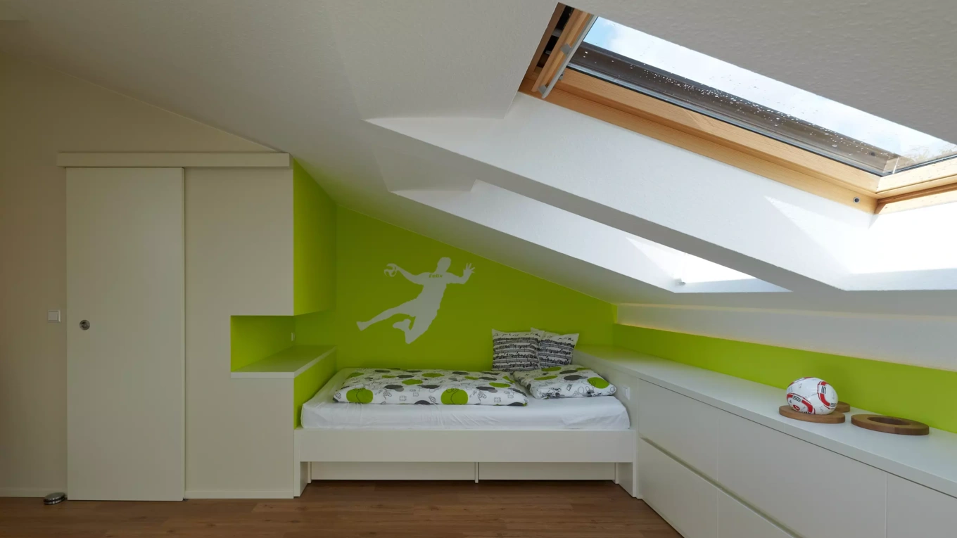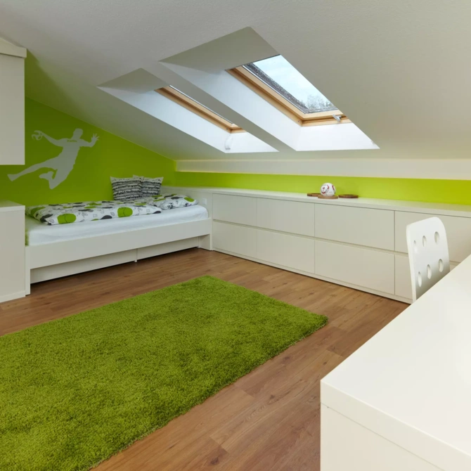- Stauraum unter Kniestock mit Schubkästen und LED-Beleuchtung