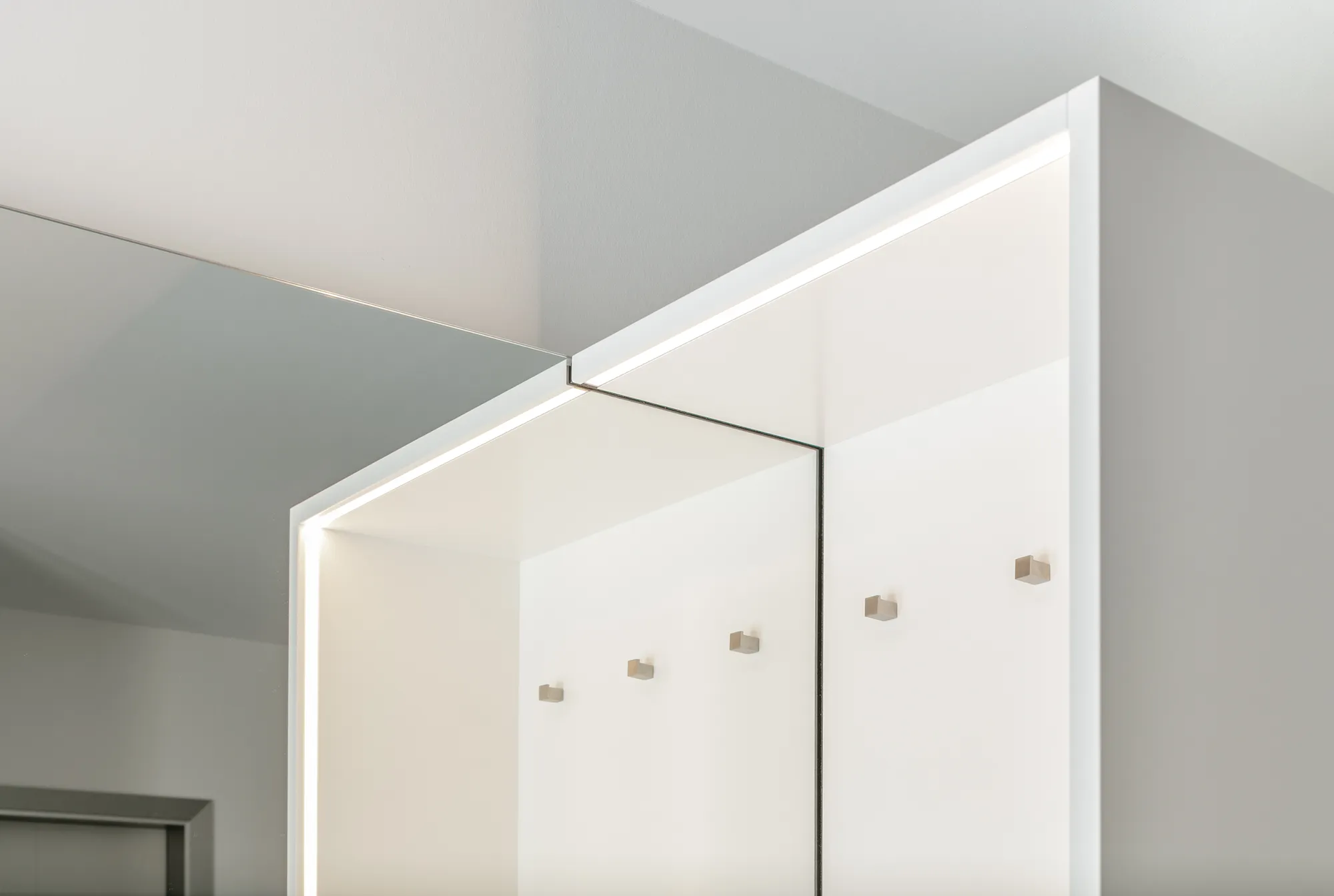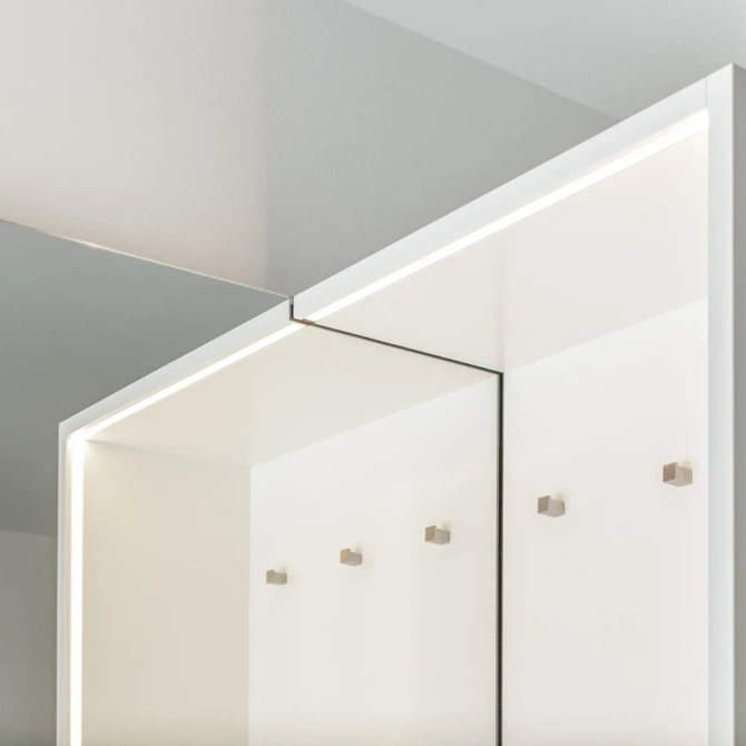 - Spiegel "läuft" ins Flurmöbel hinein und dupliziert die Tiefe des Möbels
