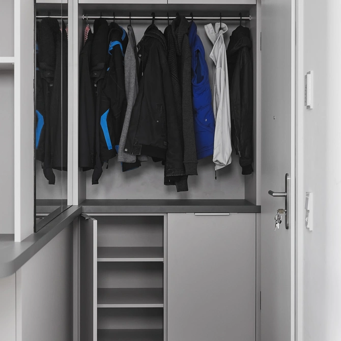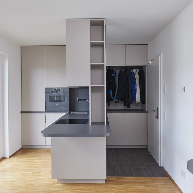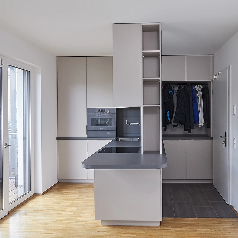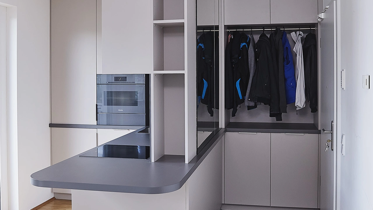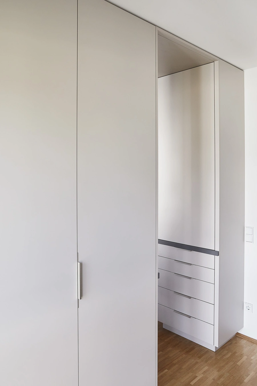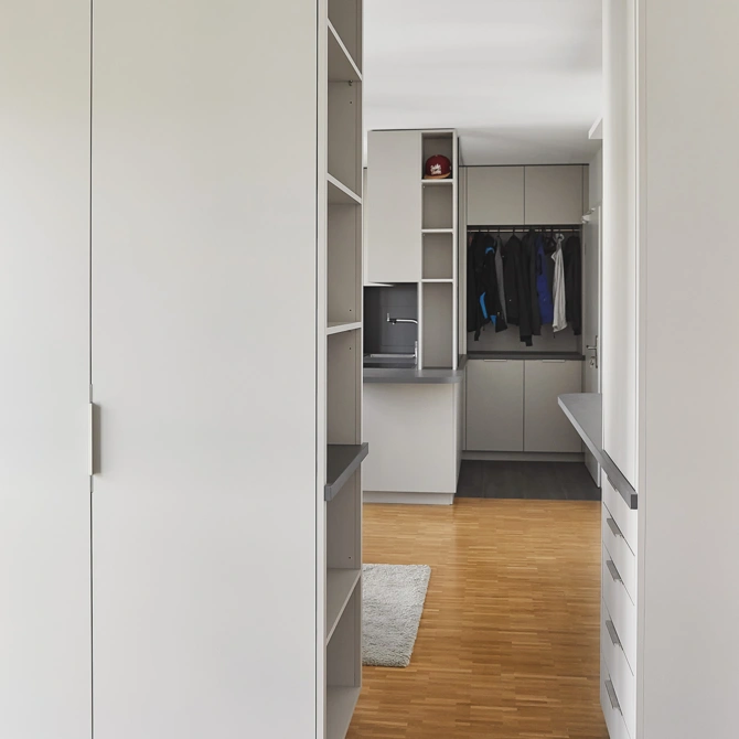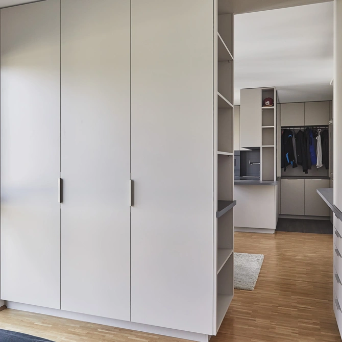 Einbaumöbel für Ankleidezimmer, Schlafbereich und Garderobe sorgen für ruhiges Raumgefühl