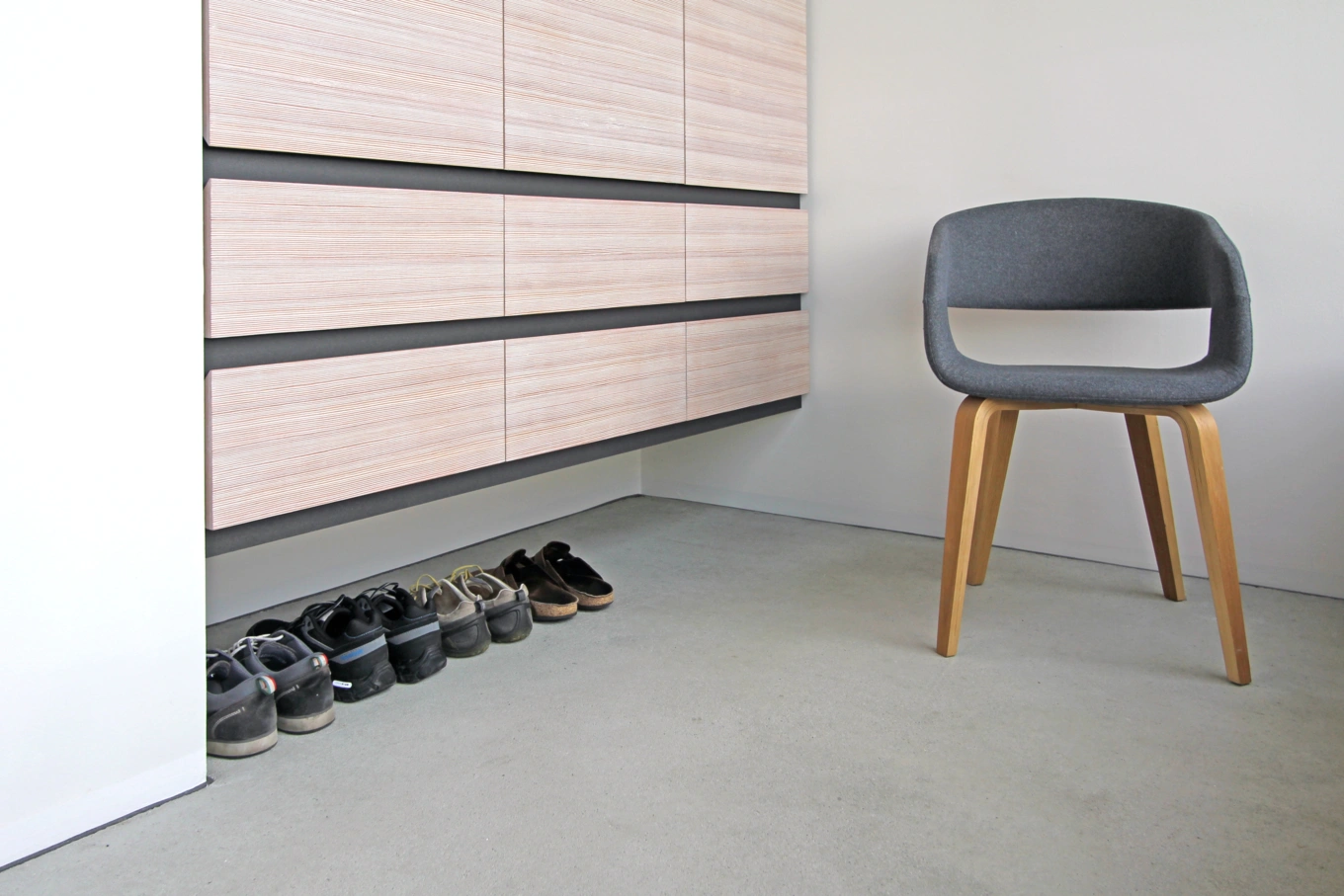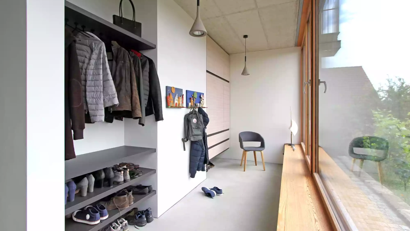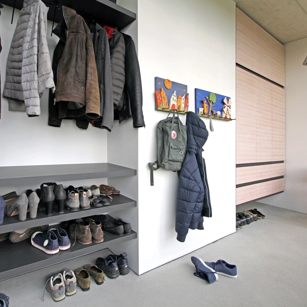 - Offene Ablageflächen zur Nutzung als Tagesgarderobe, Ablage und Schuhregal