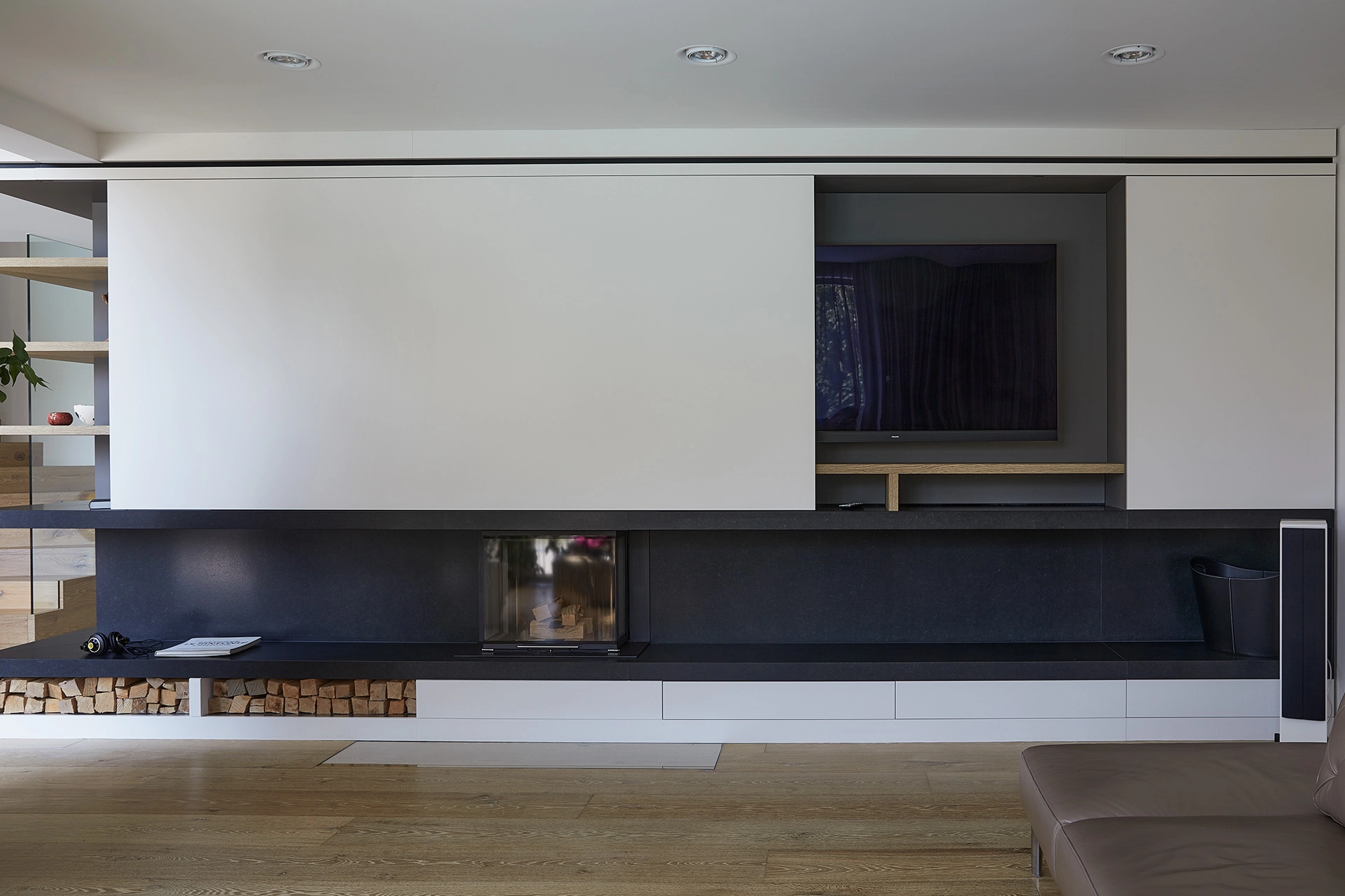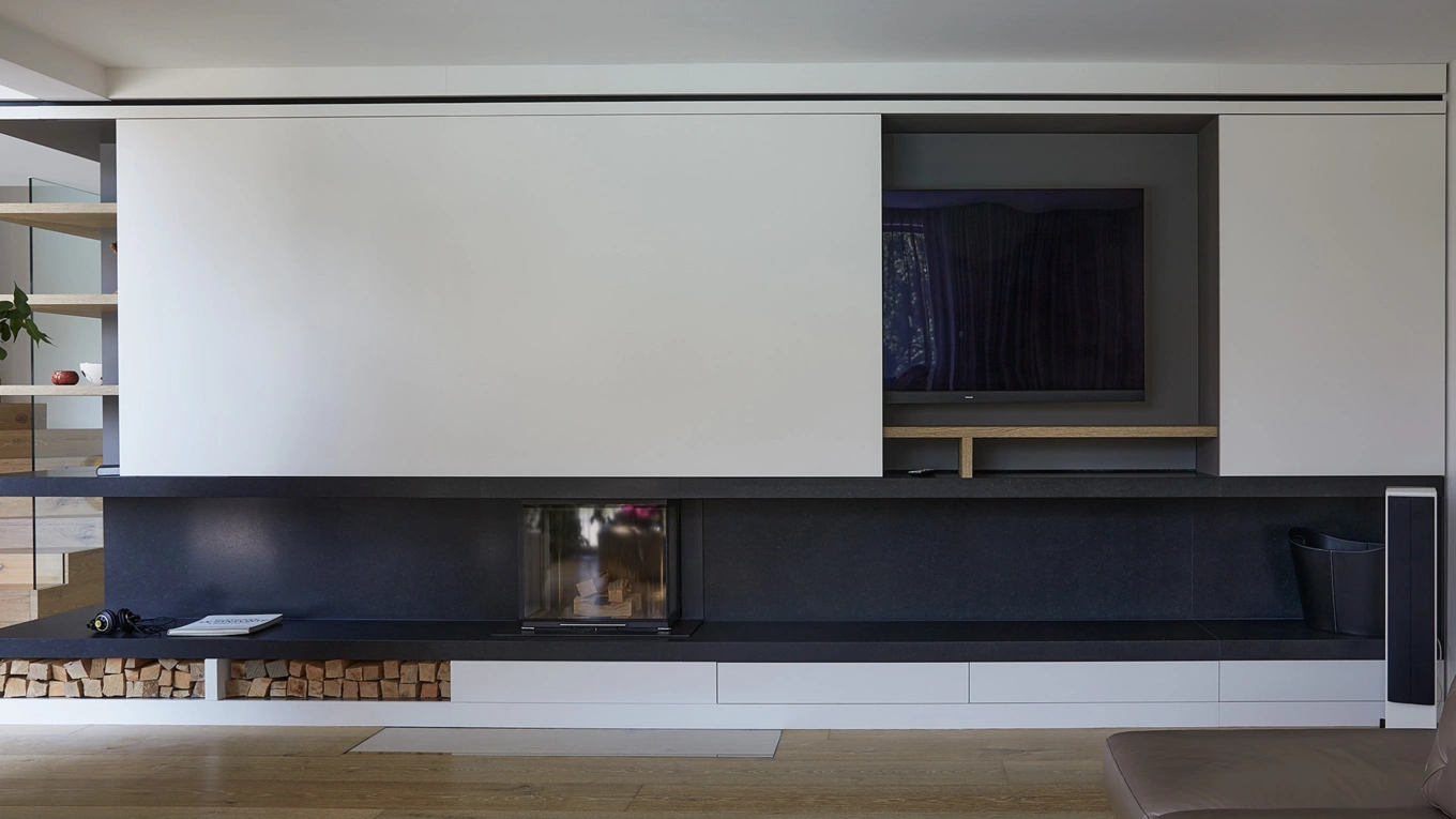 - Schiebetür für eine flexible Nutzung des Raums und die Möglichkeit, den TV verschwinden zu lassen