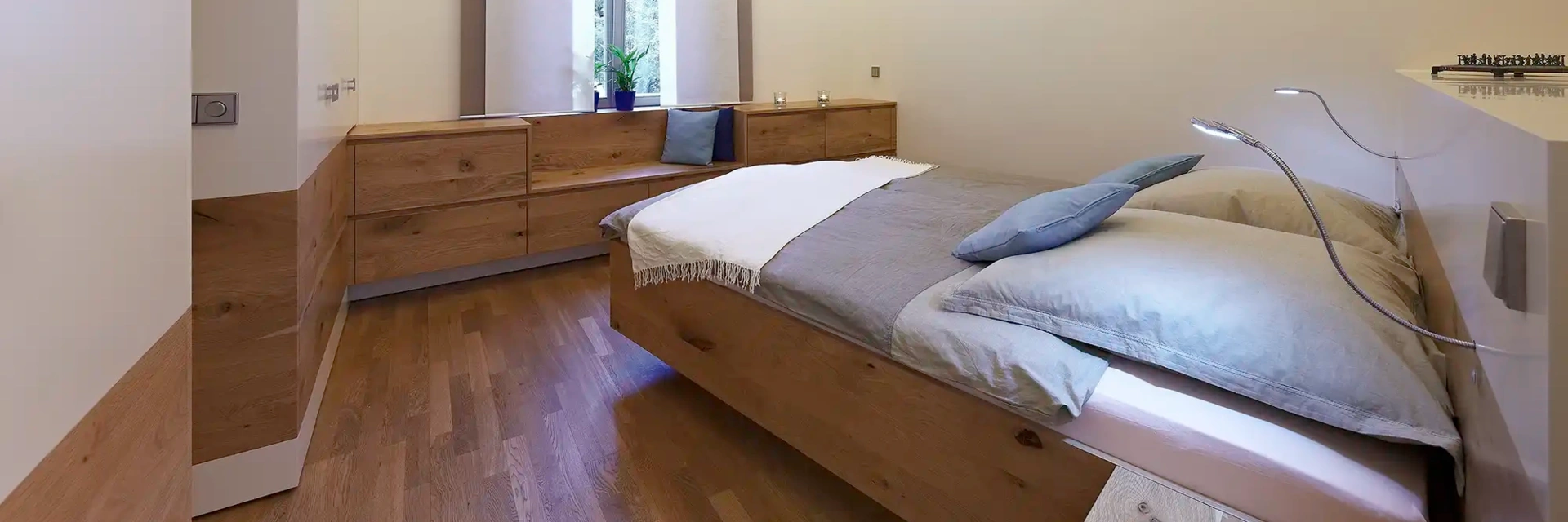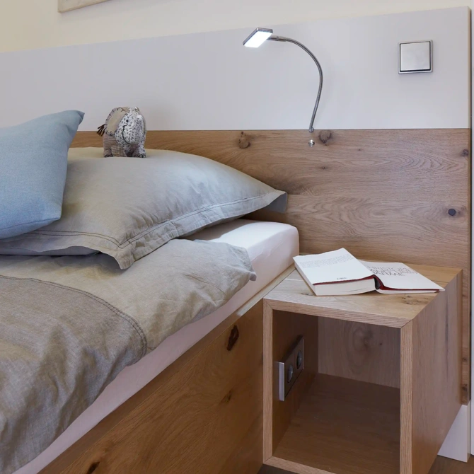 - Integration von Schaltern, Dosen und Leuchten im Betthaupt