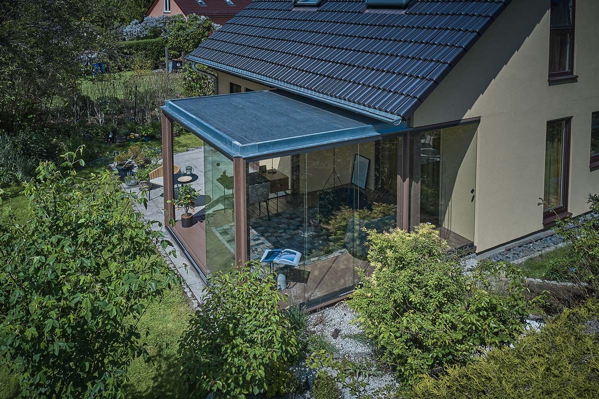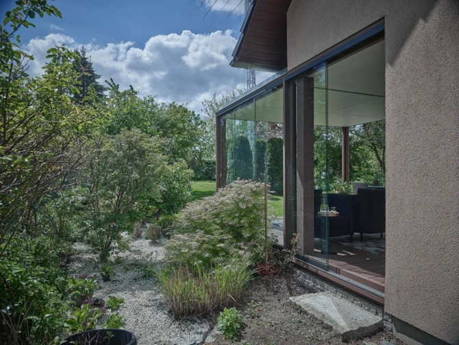 Im Dresdner Umland wurde ein bestehendes Einfamilienhaus um einen Sommerwintergarten erweitert. Ein friedlicher Ort, an dem die Besitzer ihren Garten unabhängig vom Wetter im Frühling, Sommer und an lauen Herbsttagen genießen können.