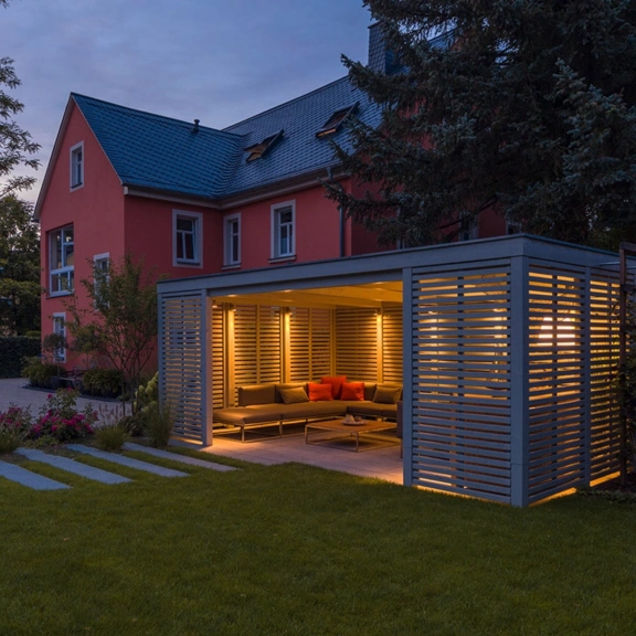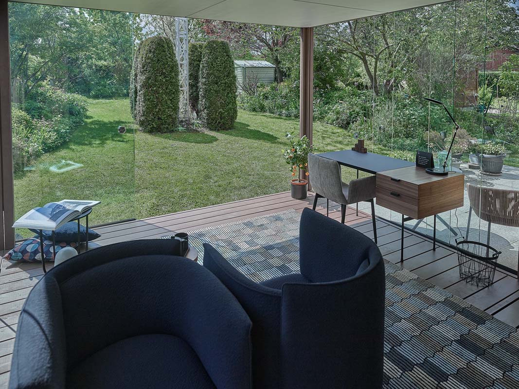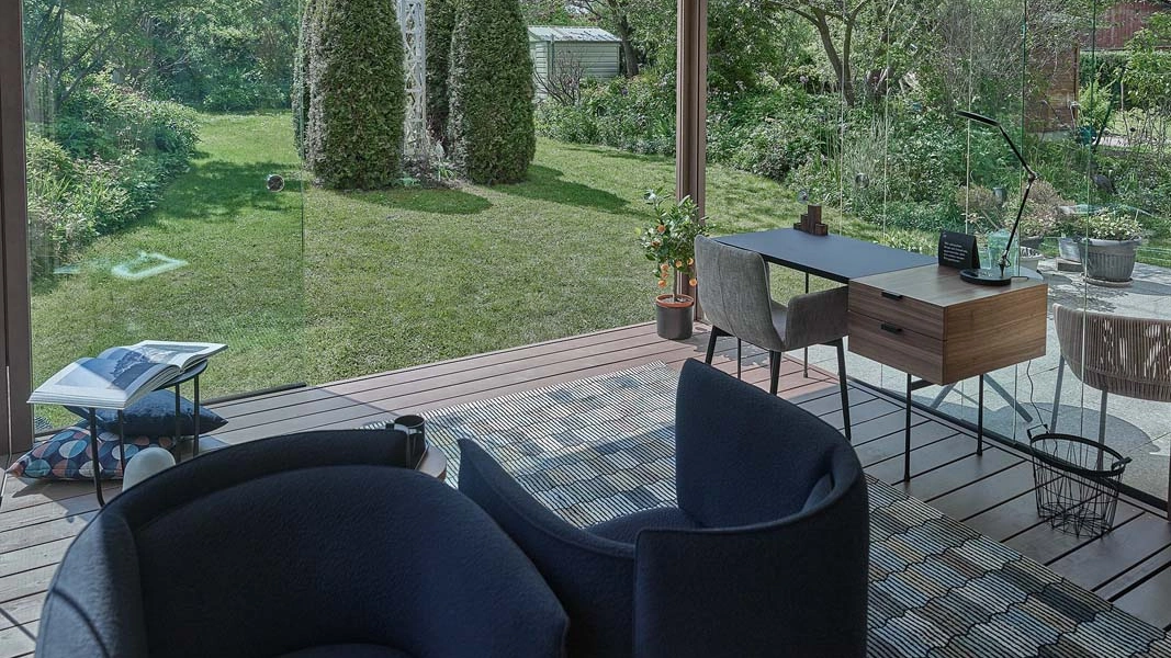 Ein Rückzugsort im eigenen Garten. Die Natur als Protagonist. Dem Alltag entfliehen. Im fließenden Übergang zwischen drinnen und draußen.