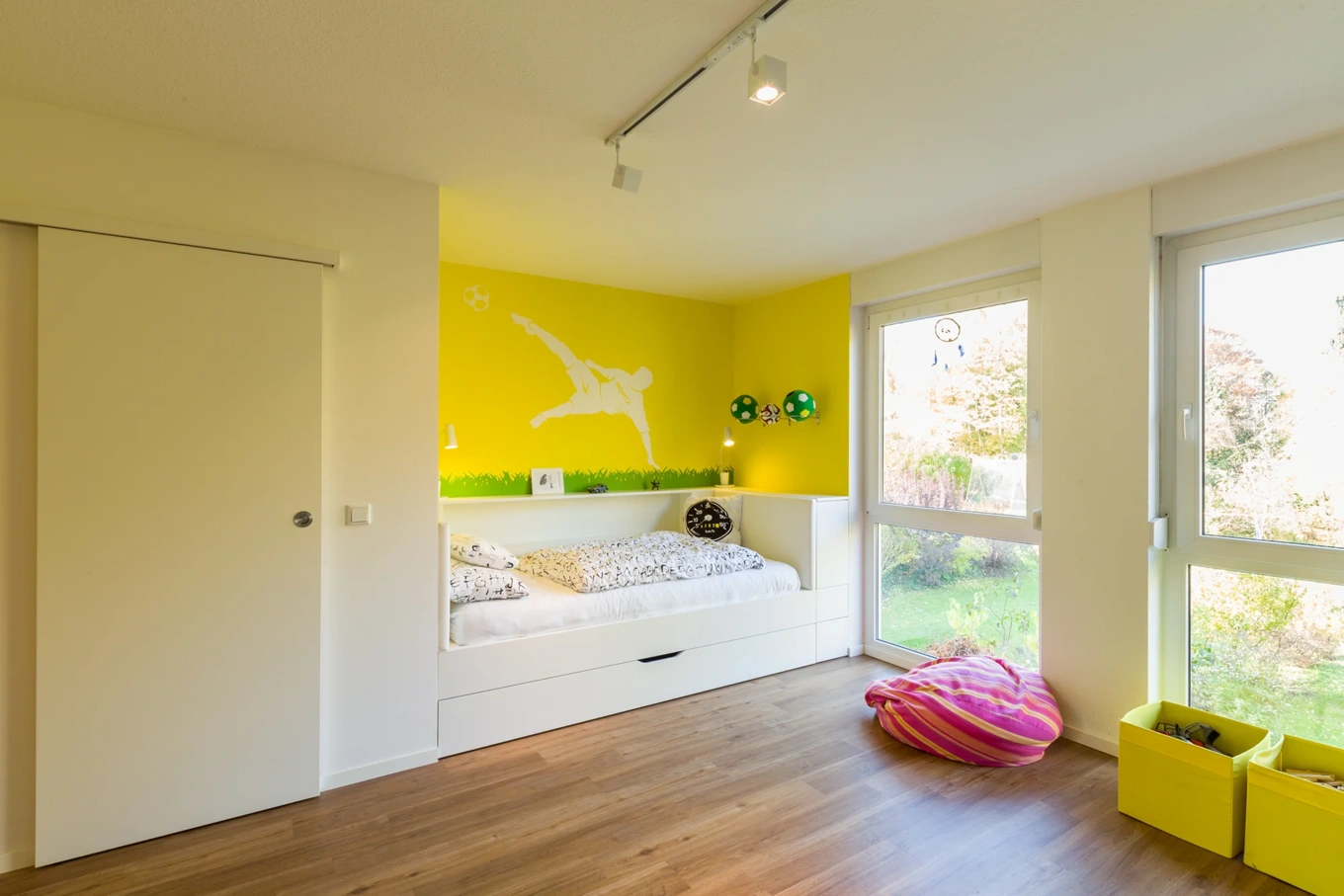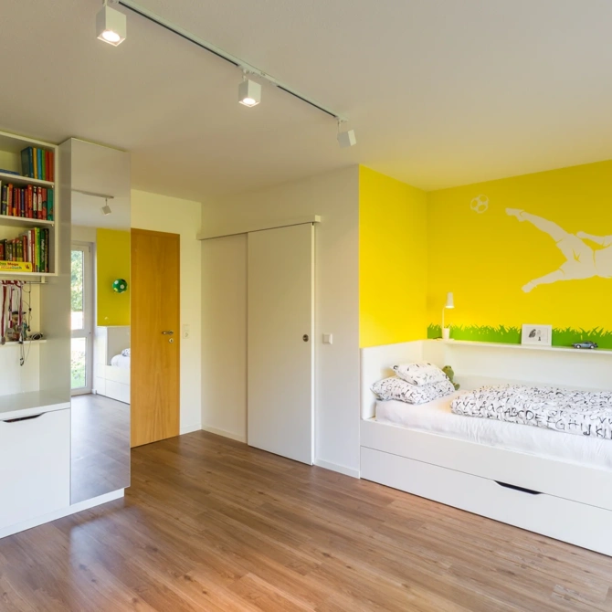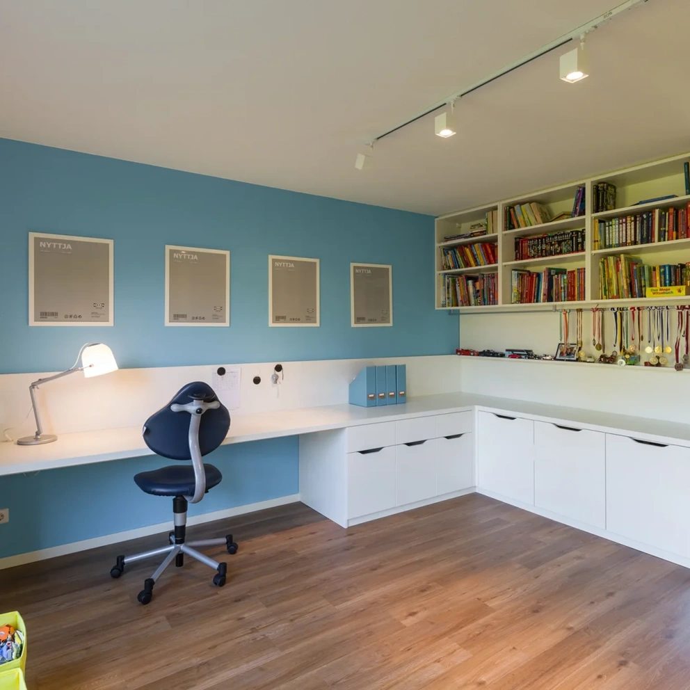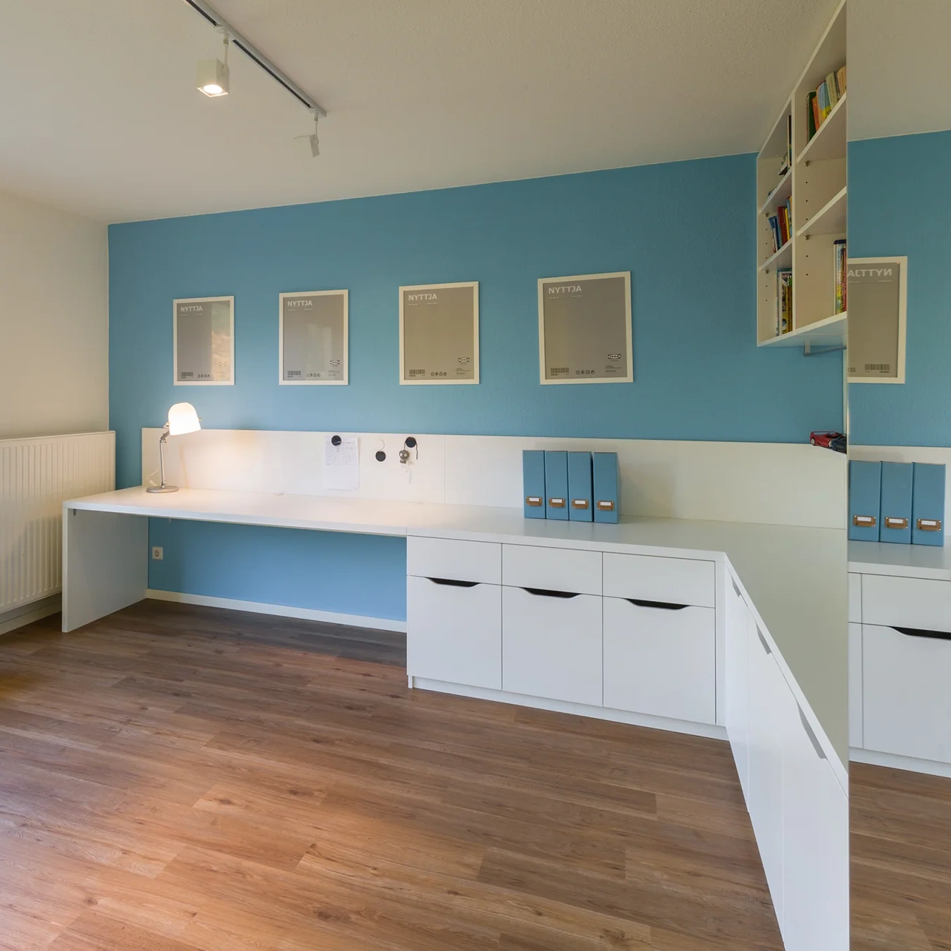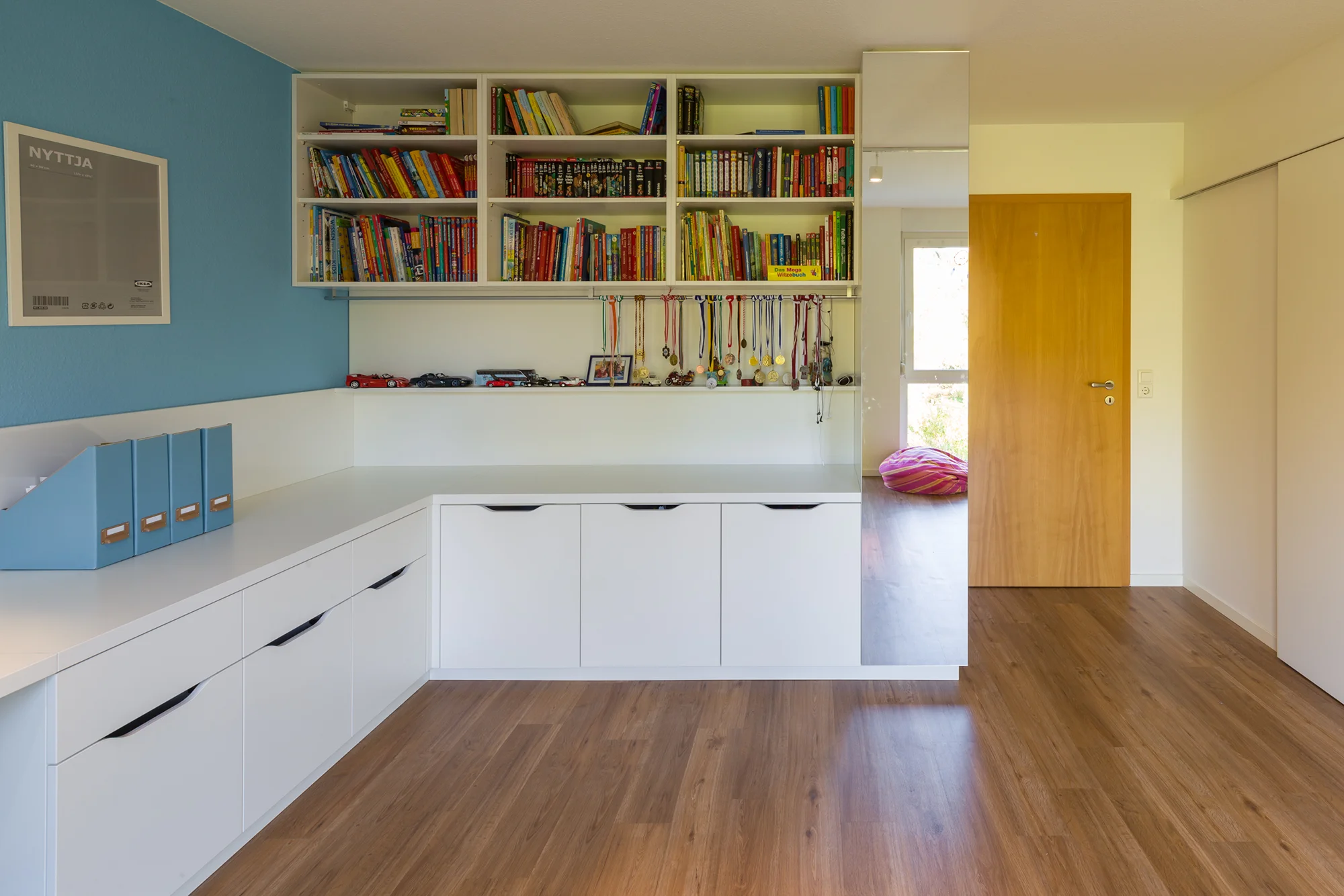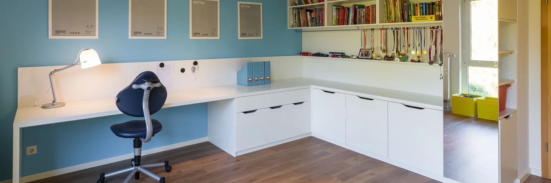 - Individuelle Komplettlösung mit Bett, Schreibtisch, Sideboards und Ankleide, dabei ist der Schreibtisch extra groß