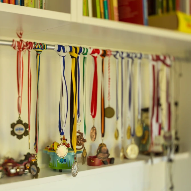 - Ablageboard und Bettkasten zum Ausziehen, angepasste Hochränke und Sideboards zum Verstauen und Ablegen