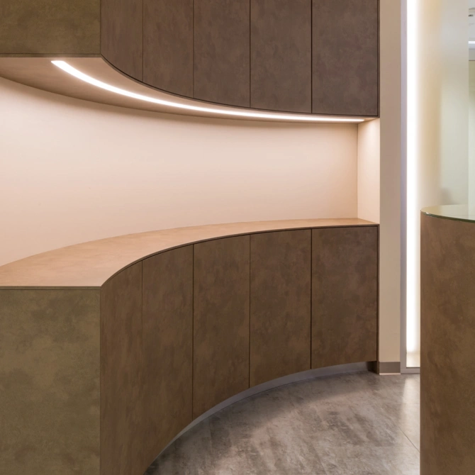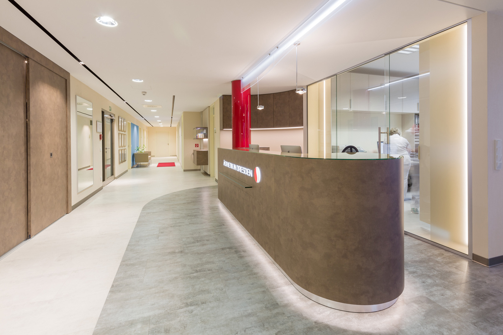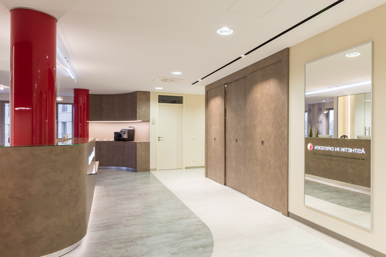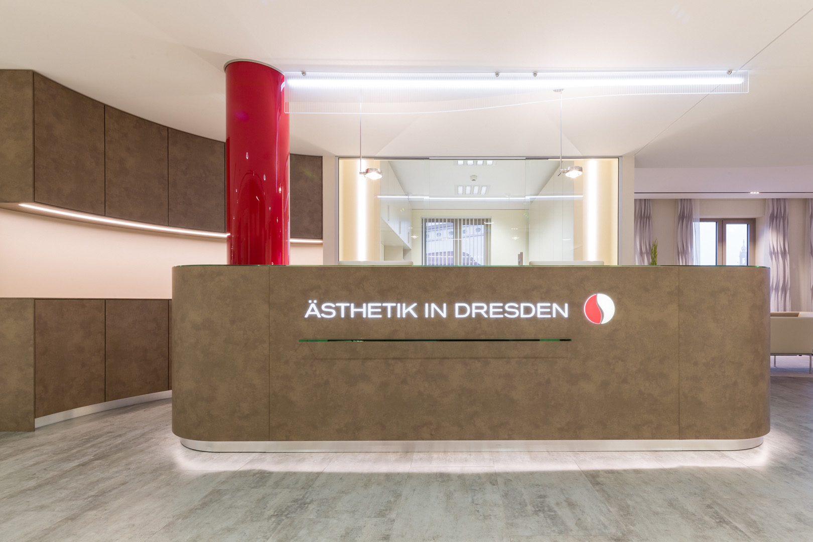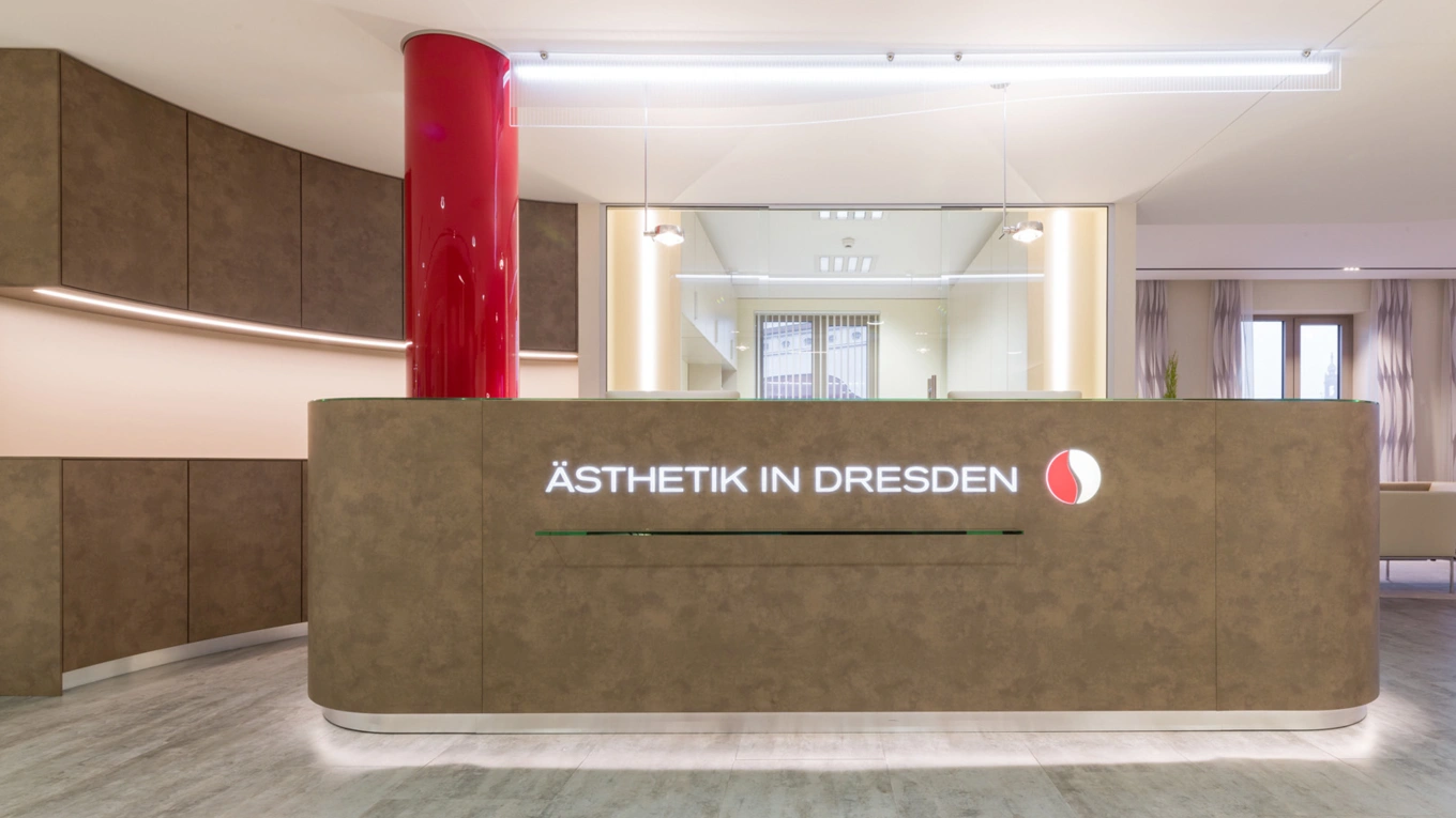 - Zentral gelegener Empfangstresen mit zwei Arbeitsplätzen inkl. Schubkästen