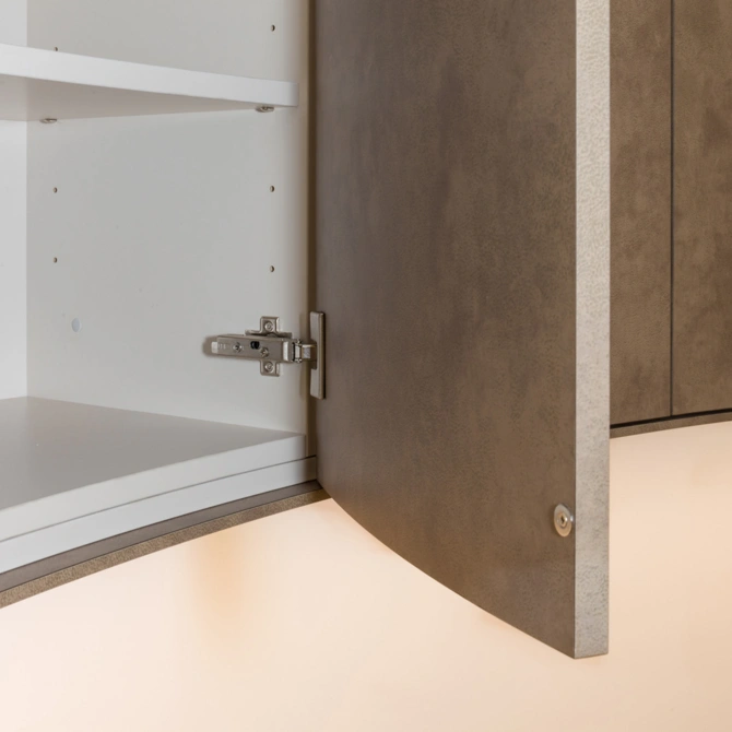 - LED-Akzentbeleuchtung unter Hängeschrankelementen und am Tresenboden