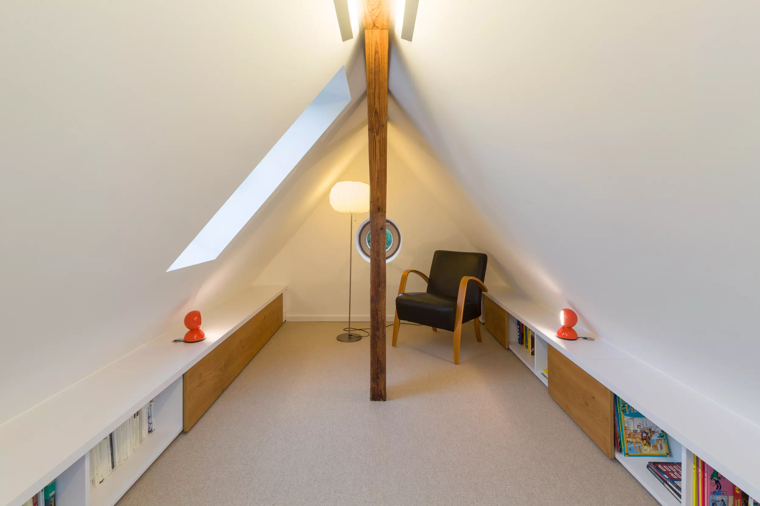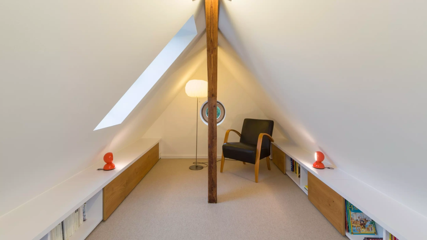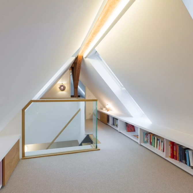 - Treppe dient als zentrales Gestaltungselement, das die Verbindung zwischen verschiedenen Bereichen des Dachbodens schafft