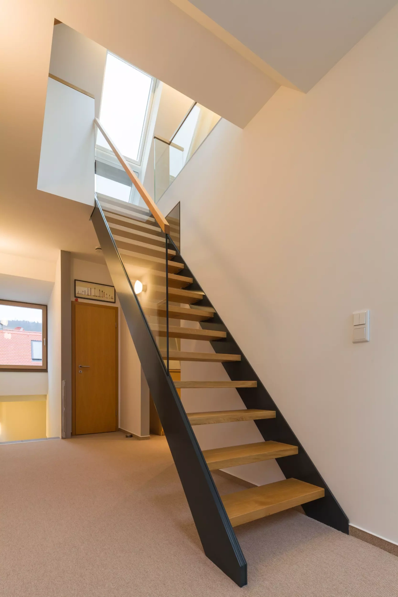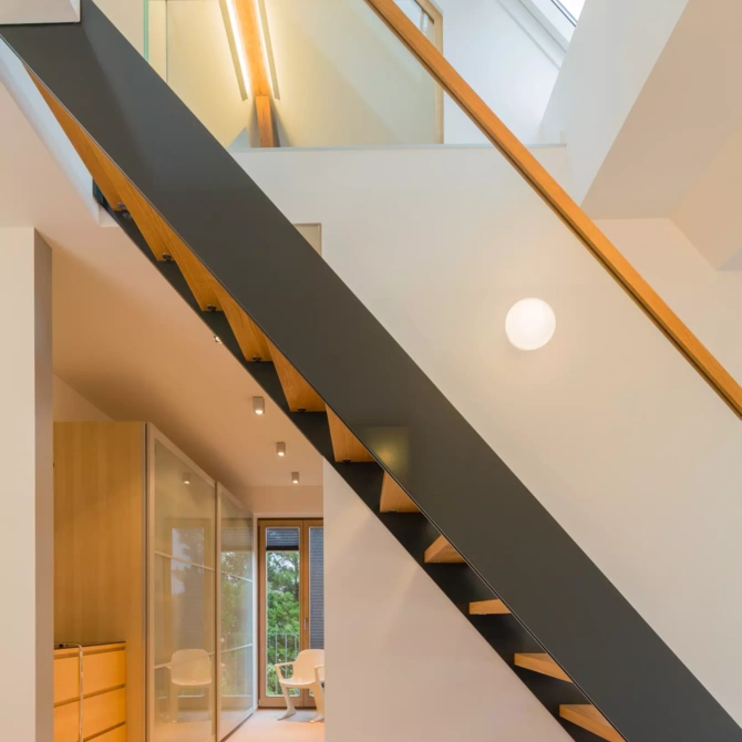 - Treppe als funktionales Designelement, das sowohl Platz spart als auch die Räume optisch miteinander verbindet