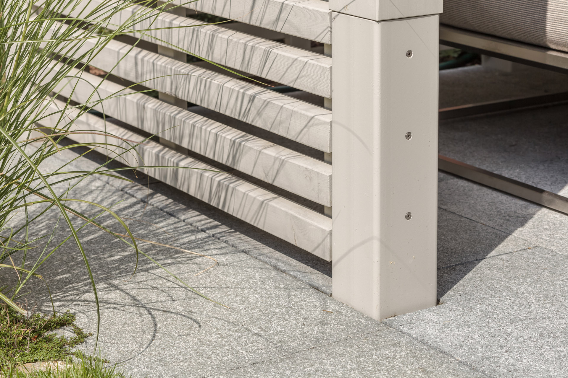 - Sichtverkleidung aus horizontalen Leisten, flächenbündig nach außen gesetzt