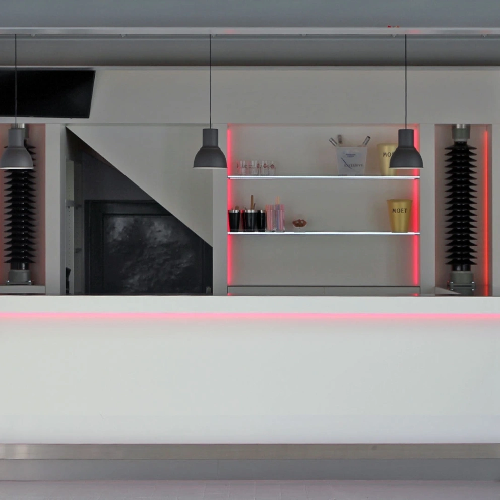 - Diskotresen/Bar als zentraler Bestandteil des Raums