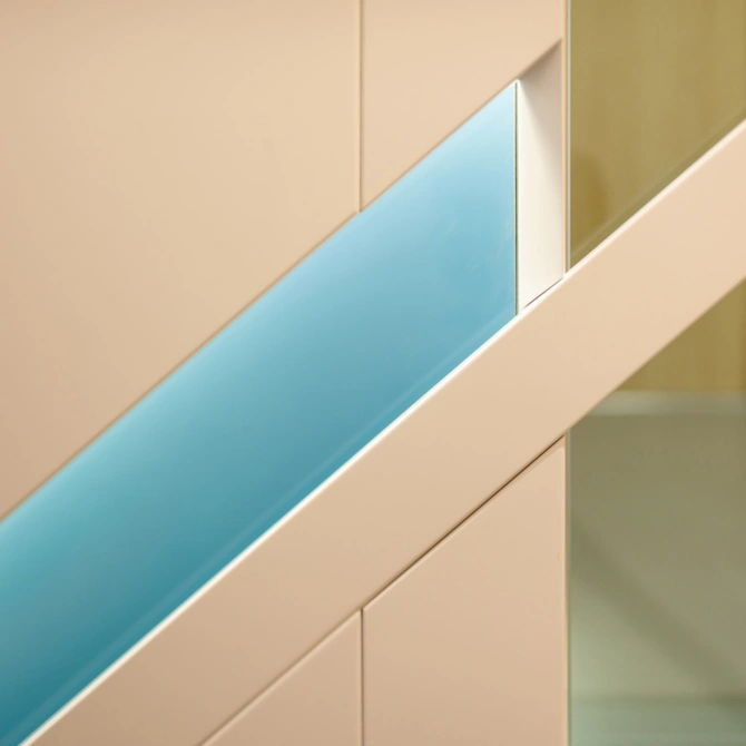 - Brüstungsgeländer aus VSG-Floatglas blau