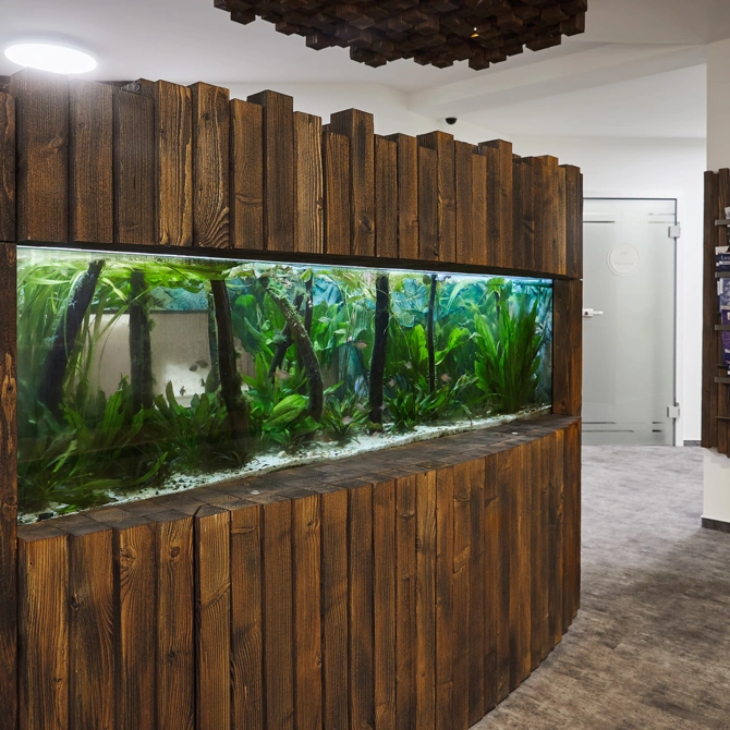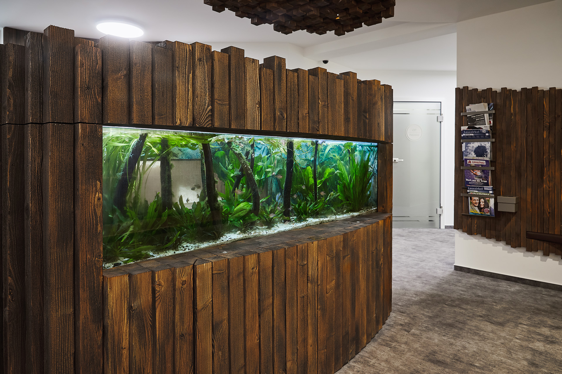 + Wartebeich mit Aquarium, Polsterbank und Garderobe