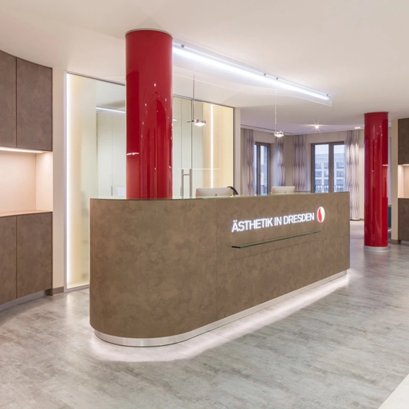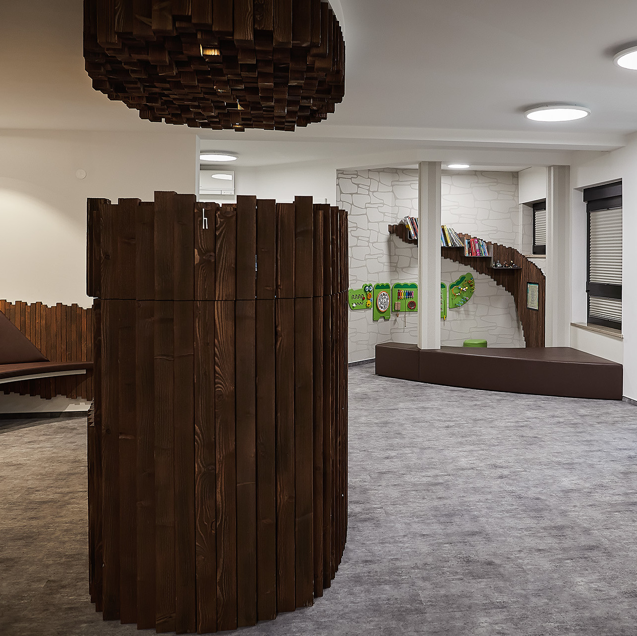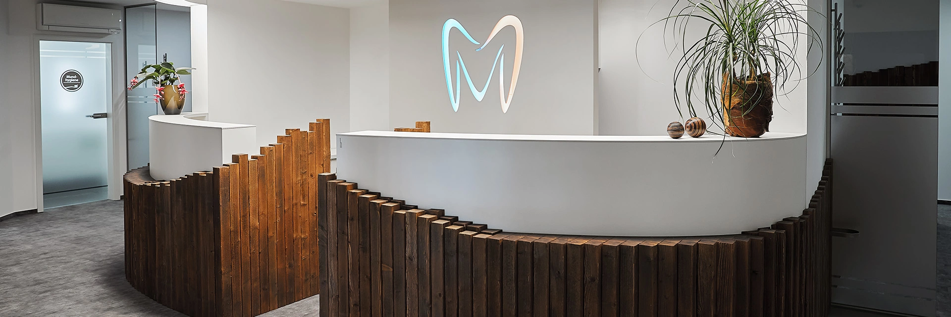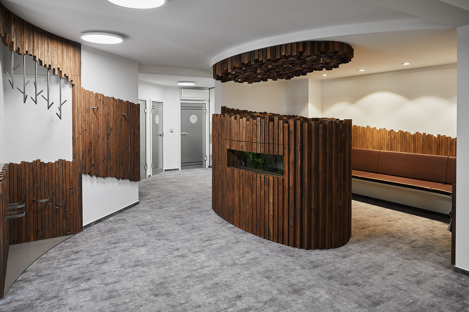 Hier kann man dem Zahnarzttermin entspannt entgegensehen: Zwischen Amazonasaquarium und Altholzpalisaden. Das Design zieht sich in sanften Wellen über zwei Etagen vom Tresen über Wartebereiche bis zur Kinderspielecke.