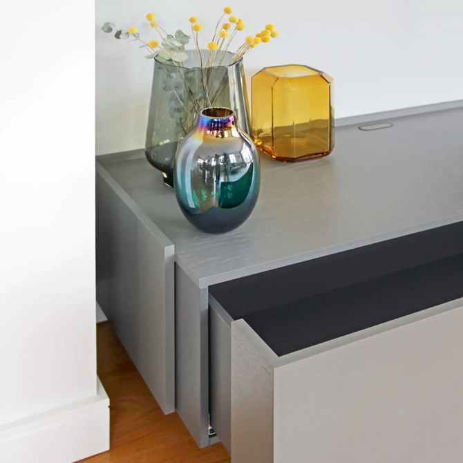 - Zurückhaltendes Design mit hochwertiger Materialwirkung